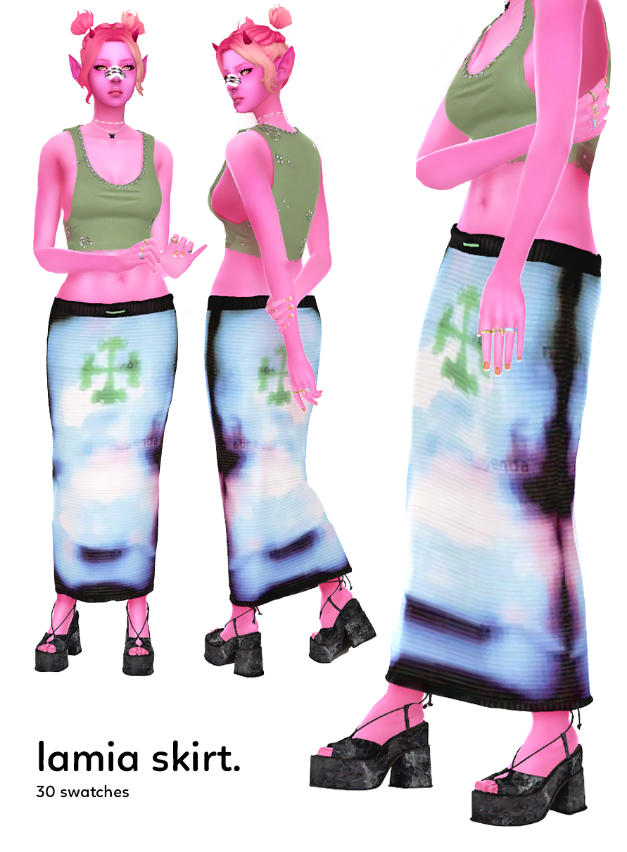 Lamia Skirt$0+$0+https://schema.org/InStockusdnsvesnsves13 ratings30 swatches, alpha mostlyoriginal tumblr post found hereName a fair price:$PaySize8.18 MBAdd to wishlist New wishlistShareShare on XShare on Facebook Copy linkCopy product URLRatings5(13 ratings)1355 stars100%4 stars0%3 stars0%2 stars0%1 star0%